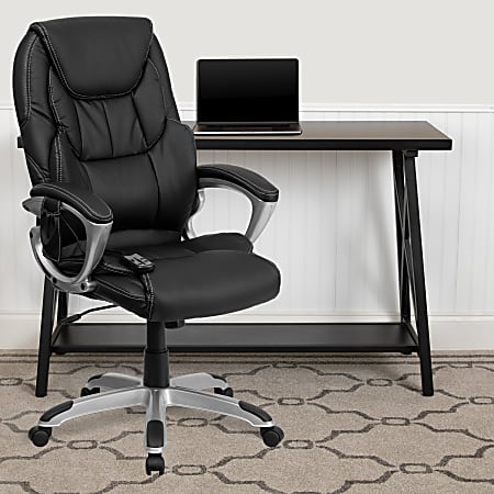 Flash Furniture Massaging Ergonomic Bonded Leathersoft High Back Swivel Office Chair Blacksilver Office Depot